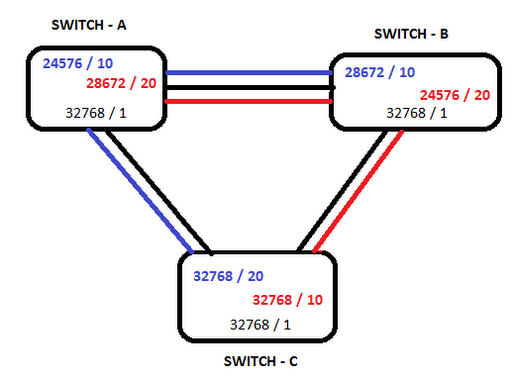 But where did this default priority come from? And why does it have to be 32768? A bit weird isn’t it? I didn’t pay much attention to it before, I accepted it for what it was, accepted that it must be for some reason but didn’t care too much. But it really annoyed me when I started tweaking PVST to do load balancing.