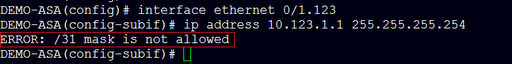 Aight lets try this on my ASA… and BAM! ASA doesn’t like /31 (I hate firewalls anyway)